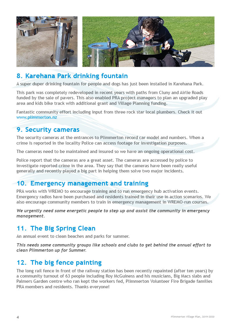 Plimmerton was the first community to develop a village plan in 2004 that set a vision for how to improve the village. Many of those projects were completed and the plan was updated with a new action plan in 2013.
